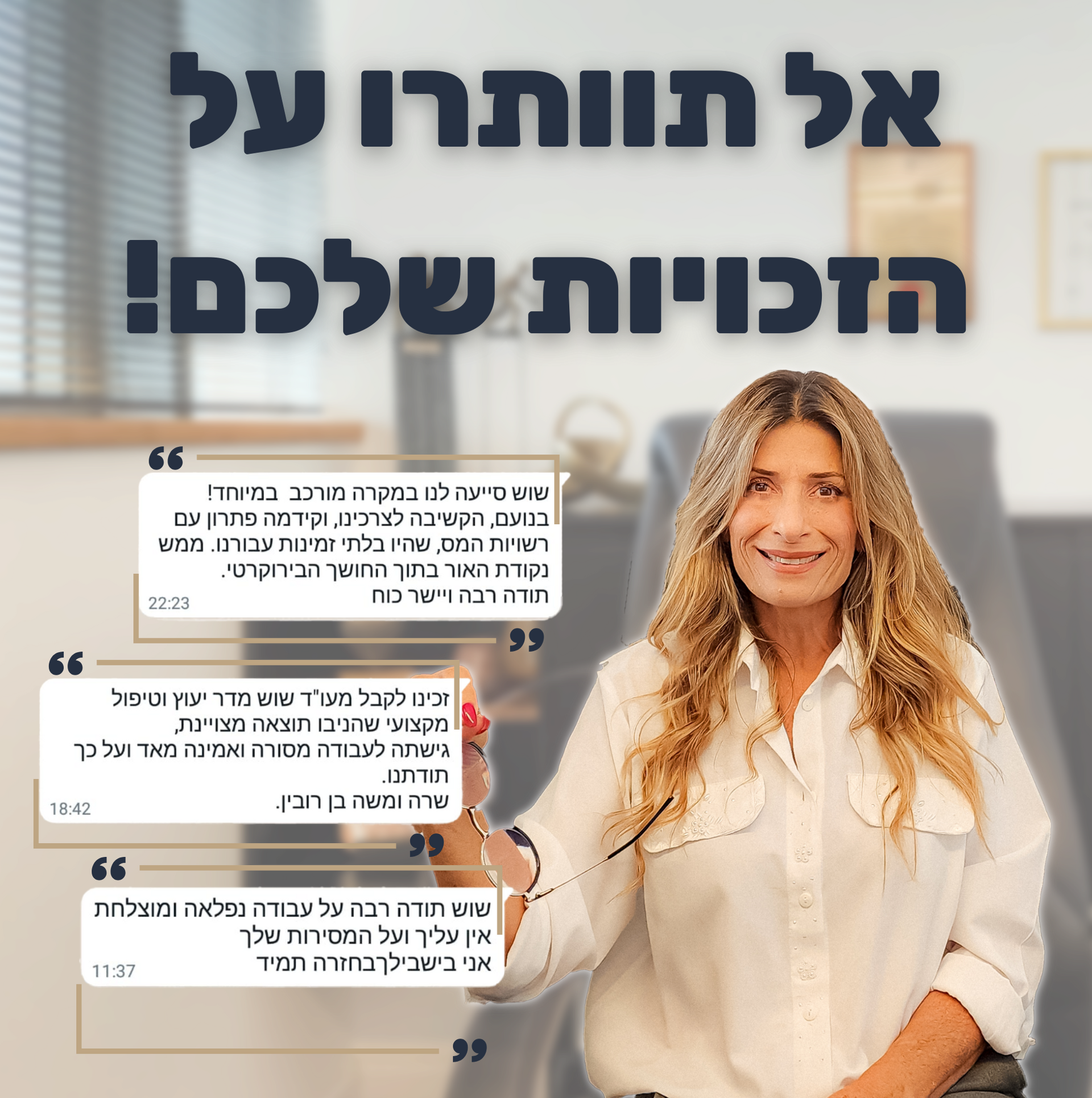 ✅ בעלת יכולת ניהול משא ומתן עם רשות המיסים ברמה גבוהה